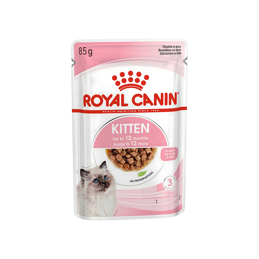 Royal Canin Kitten in Gravy is specially designed to meet the nutritional needs of growing kittens during their crucial development phase. This complete and balanced wet food supports healthy growth, digestion, and immune system development, while its soft texture makes it easy for kittens to eat.
